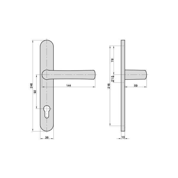- Halfset met ronde lange plaat, greep: L-vormig, onzichtbare schroefverbinding