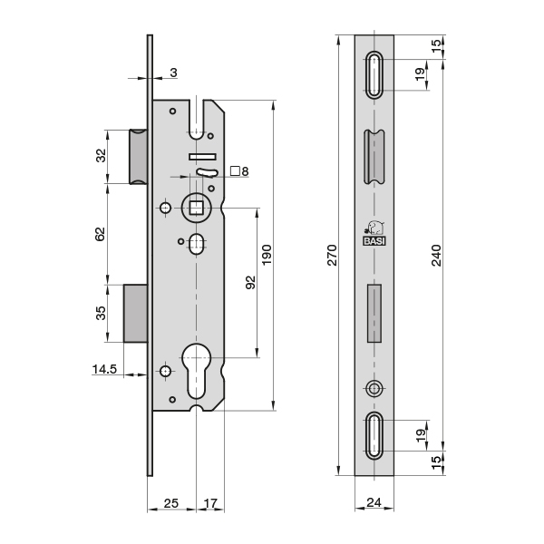 - Backset: 25 mm, Afstand: 92 mm, Vierkante aandrijving: 8 mm