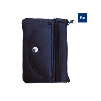 Sleuteletui 9043 - zwart leer, 120x85mm, met sleutelring, 2 ritsen, 5 stuks in een polybag