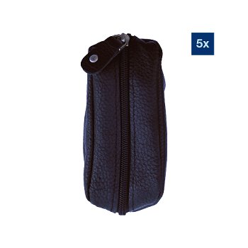 Sleuteletui 9045 - zwart leer, 100x45mm, met 2 sleutelringen, rits, 5 stuks in polybag