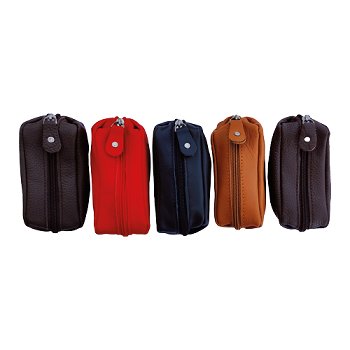 Sleuteletui 9049 - diverse kleuren, leer, 100x45mm, met 2 sleutelringen, rits, 5 stuks in een polybag