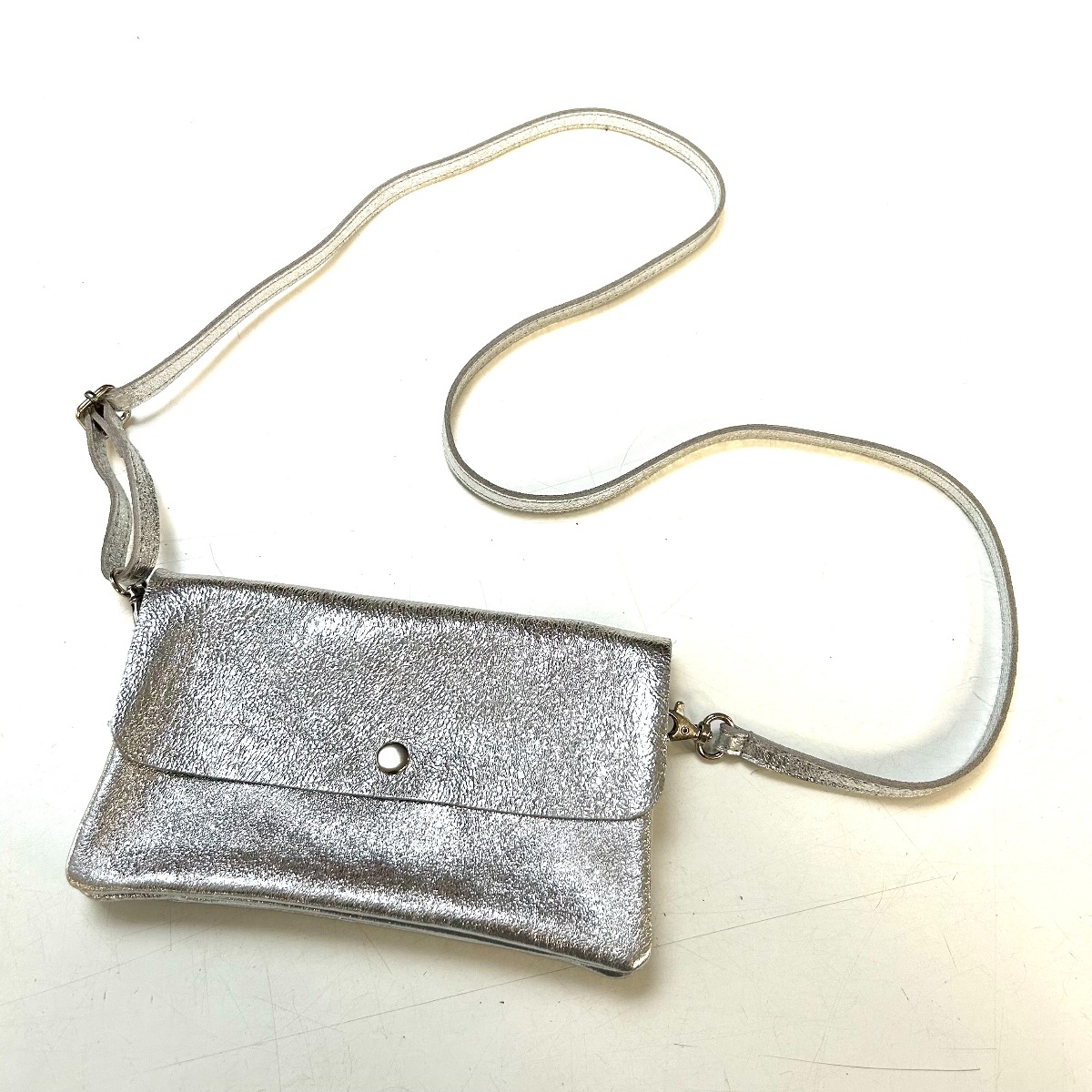M&M leather fashion schoudertasje 12x20cm metallic zilver #